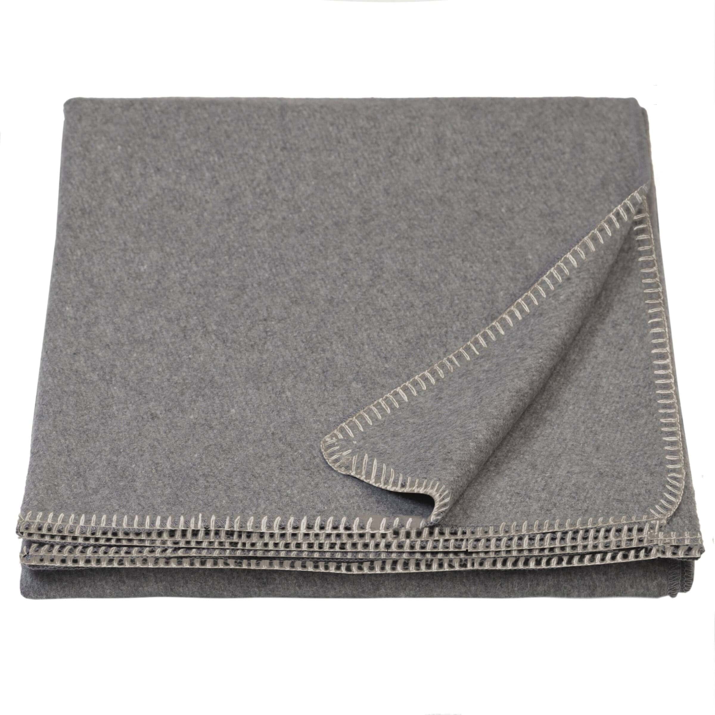 70% wool blend oversized throw, finished with a contrasting color stitch