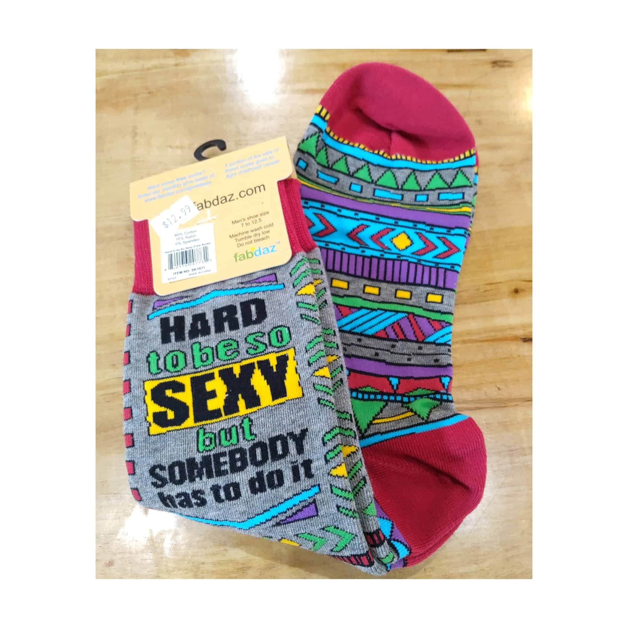 Men’s Novelty Crew Socks, Funny Saying ‘Hard to Be Sexy But Somebody Has to Do It’